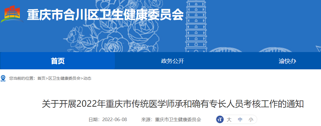 關(guān)于開展2022年重慶市傳統(tǒng)醫(yī)學(xué)師承和確有專長人員考核工作的通知