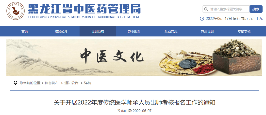 關(guān)于“關(guān)于開展黑龍江省2022年度傳統(tǒng)醫(yī)學(xué)師承人員出師考核報(bào)名工作的通知”相關(guān)內(nèi)容,相信參加2022年傳統(tǒng)醫(yī)學(xué)師承與確有專長考核的考生都在關(guān)注,為方便大家了解,在此醫(yī)學(xué)教育網(wǎng)小編為大家整理如下內(nèi)容: