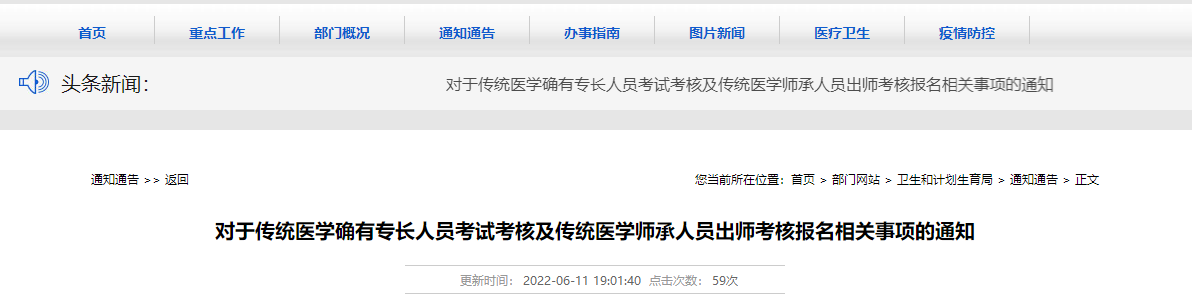 全國(guó)2022年傳統(tǒng)醫(yī)學(xué)師承和確有專(zhuān)長(zhǎng)人員考核報(bào)名通知匯總