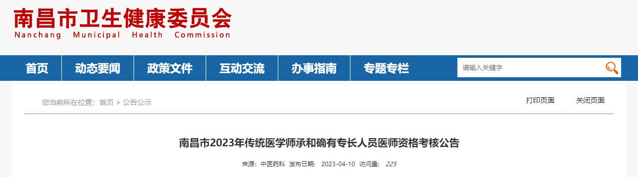 南昌市2023年傳統(tǒng)醫(yī)學(xué)師承和確有專長人員醫(yī)師資格考核公告