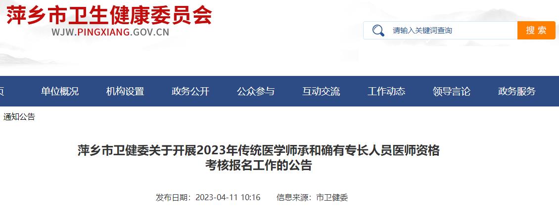 江西省萍鄉(xiāng)市衛(wèi)健委關(guān)于開(kāi)展2023年傳統(tǒng)醫(yī)學(xué)師承和確有專(zhuān)長(zhǎng)人員醫(yī)師資格考核報(bào)名工作的公告
