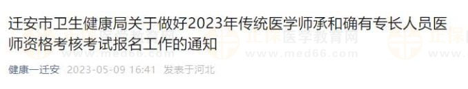 遷安市衛(wèi)生健康局關(guān)于做好2023年傳統(tǒng)醫(yī)學(xué)師承和確有專長(zhǎng)人員醫(yī)師資格考核考試報(bào)名工作的通知