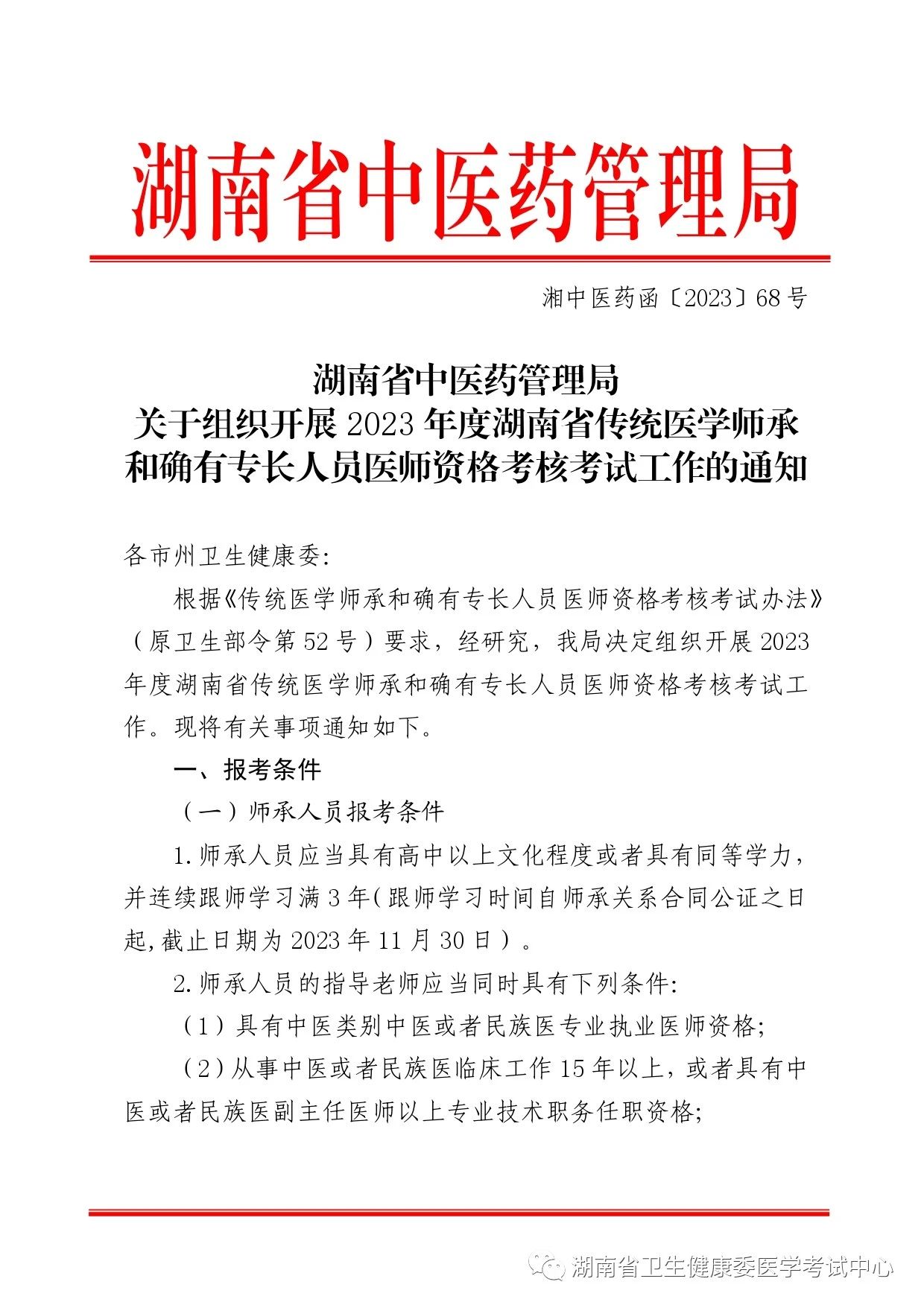 湖南省中醫(yī)藥管理局發(fā)布關于開展2023年度全省傳統(tǒng)醫(yī)學師承和確有專長人員醫(yī)師資格考核考試工作的通知,為幫助各位考生了解,在此醫(yī)學教育網(wǎng)小編為大家整理如下內(nèi)容: