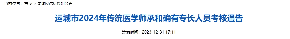 運城市2024年傳統(tǒng)醫(yī)學師承和確有專長人員考核通告