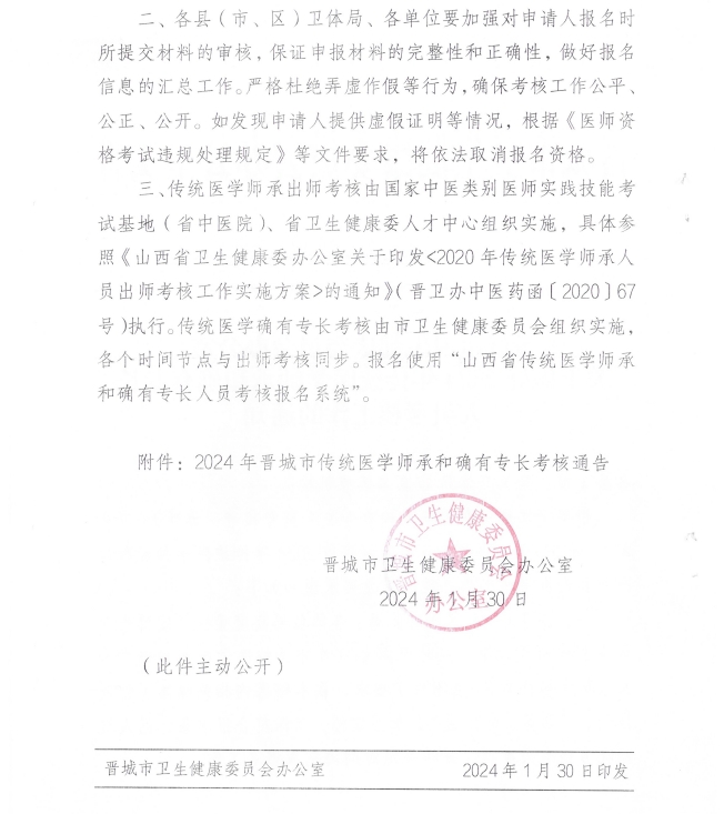 附件:晉城市關(guān)于做好2024年傳統(tǒng)醫(yī)學(xué)師承和確有專長(zhǎng)人員考核工作的通知