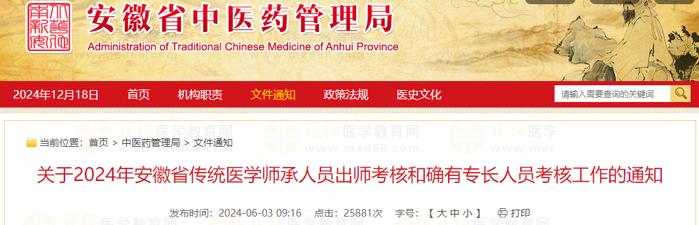 2024年安徽省傳統(tǒng)醫(yī)學(xué)師承人員出師考核和確有專長(zhǎng)人員考核工作的通知