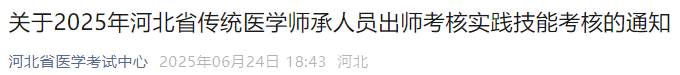 河北省官方發(fā)布2025年傳統(tǒng)醫(yī)學(xué)師承人員出師考核實(shí)踐技能考核安排,包含考試時(shí)間、考試地點(diǎn)、準(zhǔn)考證打印時(shí)間以及考生注意事項(xiàng),請(qǐng)相關(guān)考生及時(shí)查看。