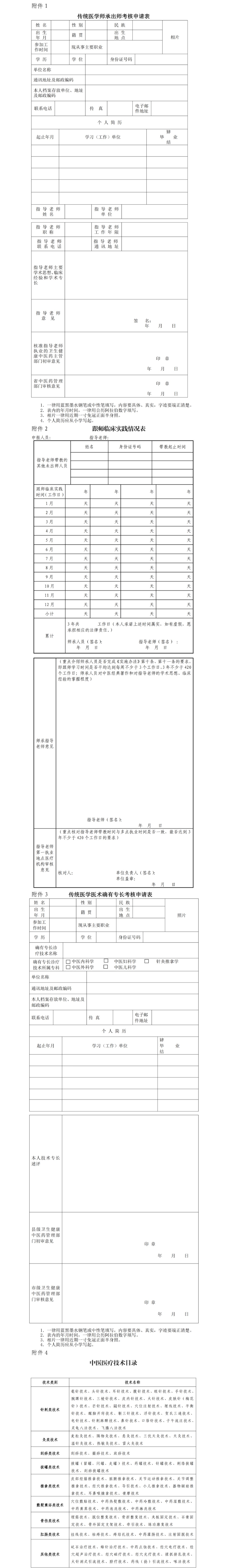 1.傳統(tǒng)醫(yī)學(xué)醫(yī)術(shù)確有專長考核申請表(附件3);