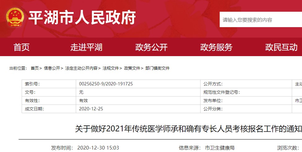 平湖市2021年傳統(tǒng)醫(yī)學(xué)師承和確有專長人員考核報名工作的通知已發(fā)布,2021年傳統(tǒng)醫(yī)學(xué)師承和確有專長人員考核網(wǎng)上報名工作定于2021年1月18日9:00-2月8日17:00進行。醫(yī)學(xué)教育網(wǎng)編輯為您整理相關(guān)通知內(nèi)容如下,