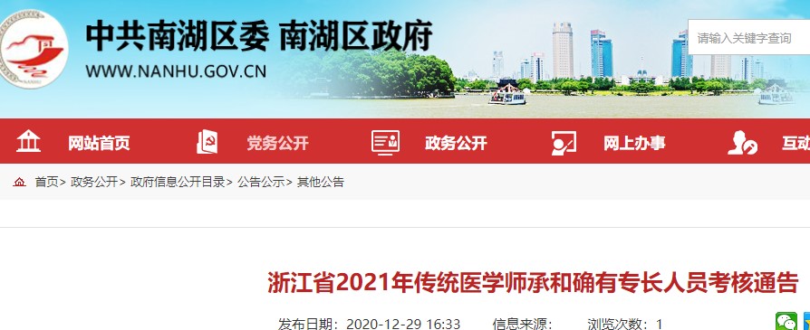 嘉興市南湖區(qū)2021年傳統(tǒng)醫(yī)學師承和確有專長考核報名及審核事宜已發(fā)布,報名工作定于 2021年1月18日9:00-2月8日17:00進行?,F場審核確認時間:2021年1月18日—1月29日(工作日),傳統(tǒng)醫(yī)學師承申請人持《傳統(tǒng)醫(yī)學師承出師考核申請表》到師承指導老師主要執(zhí)業(yè)機構在南湖區(qū)的,前往南湖區(qū)衛(wèi)生健康局醫(yī)政醫(yī)管科(中醫(yī)管理科)進行報名資格初審和報名信息確認;