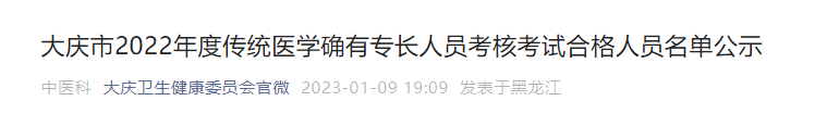 大慶市2022年度傳統(tǒng)醫(yī)學確有專長人員考核考試合格人員名單公示