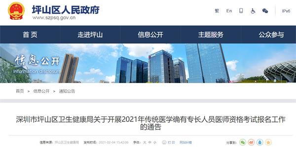 深圳市坪山區(qū)衛(wèi)生健康局關(guān)于開(kāi)展2021年傳統(tǒng)醫(yī)學(xué)確有專(zhuān)長(zhǎng)人員醫(yī)師資格考試報(bào)名工作的通告已發(fā)布,醫(yī)學(xué)教育網(wǎng)編輯為您整理深圳市坪山區(qū)2021年傳統(tǒng)醫(yī)學(xué)確有專(zhuān)長(zhǎng)考試報(bào)名及現(xiàn)場(chǎng)確認(rèn)通知如下。