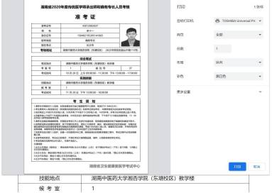 3.點(diǎn)擊打印預(yù)覽頁(yè)面右下方的“打印”按鈕后,即打印準(zhǔn)考證操作流程已全部執(zhí)行完畢,完成打印。如下圖所示: