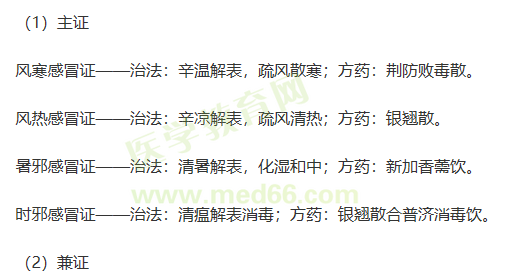 感冒夾痰證——治法:風(fēng)寒夾痰者,辛溫解表,宣肺化痰;風(fēng)熱夾痰者,辛涼解表,清肺化痰;方藥:在疏風(fēng)解表基礎(chǔ)上,風(fēng)寒夾痰者加二陳湯、三拗湯;風(fēng)熱夾痰者加桑菊飲、黛蛤散。