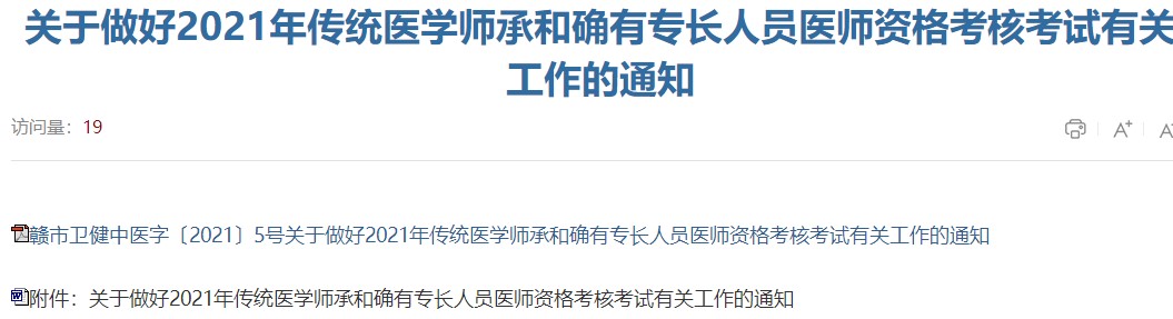 贛市衛(wèi)健中醫(yī)字〔2021〕5號關(guān)于做好2021年傳統(tǒng)醫(yī)學(xué)師承和確有專長人員醫(yī)師資格考核考試有關(guān)工作的通知