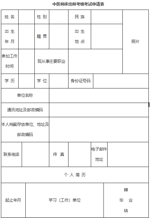 【中醫(yī)師承出師考核考試申請表】