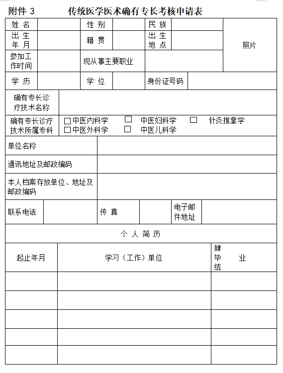 附件下載:傳統(tǒng)醫(yī)學醫(yī)術確有專長考核申請表.docx