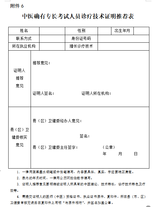 附件下載:中醫(yī)確有專長考試人員診療技術(shù)證明推薦表