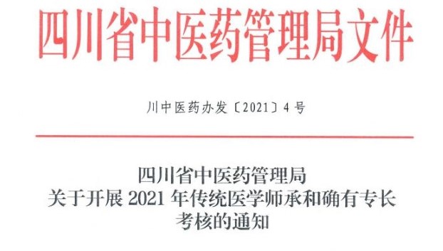四川省中藥管理局關于開展2021年傳統(tǒng)醫(yī)學師承和確有專長考試通知