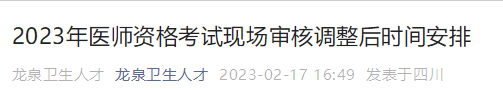2023年度龍泉驛區(qū)醫(yī)師資格考試現(xiàn)場(chǎng)資料審核調(diào)整后時(shí)間安排