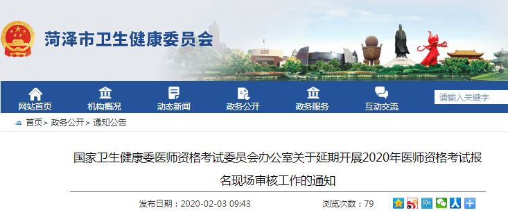 2020年菏澤市延期開展中醫(yī)執(zhí)業(yè)醫(yī)師考試報名現(xiàn)場審核工作的通知