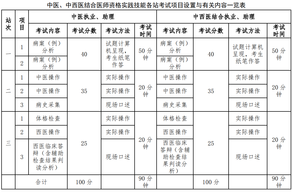 中醫(yī)、中西醫(yī)結(jié)合醫(yī)師資格實(shí)踐技能各站考試項(xiàng)目設(shè)置與有關(guān)內(nèi)容一覽表