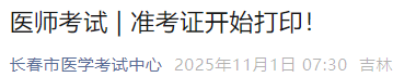 吉林長春2025年中醫(yī)執(zhí)業(yè)醫(yī)師“一年兩試”準考證開始打??!請相關考生盡快完成準考證打印,提前確認考場安排,做好應試準備!