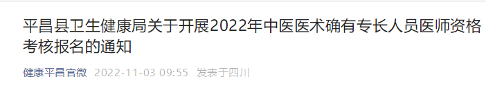 平昌縣衛(wèi)生健康局關(guān)于開展2022年中醫(yī)醫(yī)術(shù)確有專長(zhǎng)人員醫(yī)師資格考核報(bào)名的通知