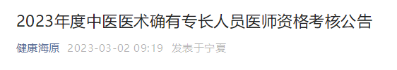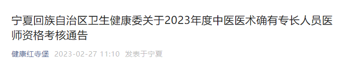 寧夏回族自治區(qū)衛(wèi)生健康委關(guān)于2023年度中醫(yī)醫(yī)術(shù)確有專長人員醫(yī)師資格考核通告