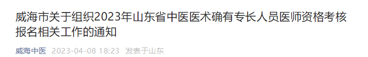 威海市關(guān)于組織2023年山東省中醫(yī)醫(yī)術(shù)確有專長(zhǎng)人員醫(yī)師資格考核報(bào)名相關(guān)工作的通知