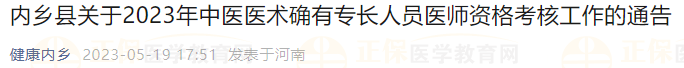 內(nèi)鄉(xiāng)縣關(guān)于2023年中醫(yī)醫(yī)術(shù)確有專長(zhǎng)人員醫(yī)師資格考核工作的通告
