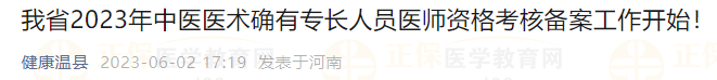 河南各地區(qū)2023年中醫(yī)醫(yī)術(shù)確有專長人員醫(yī)師資格考核報名動態(tài):