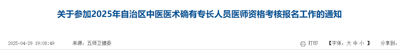 第五師雙河市人民政府發(fā)布了2025年中醫(yī)醫(yī)術(shù)確有專長人員醫(yī)師資格考核報(bào)名工作通知,請有意向的考生仔細(xì)查看具體安排及要求: