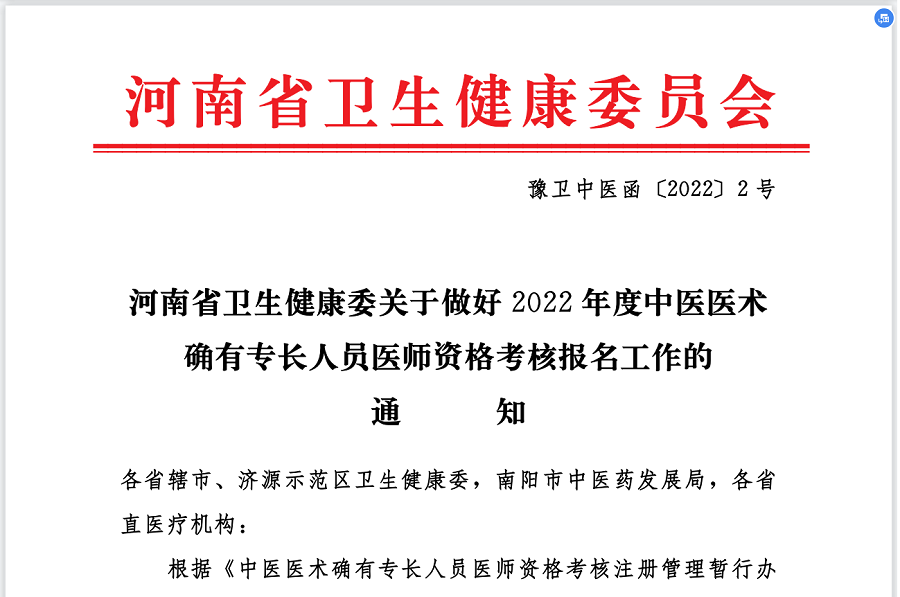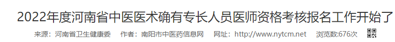 河南省2022年中醫(yī)醫(yī)術(shù)確有專長(zhǎng)人員醫(yī)師資格考核報(bào)名公告匯總