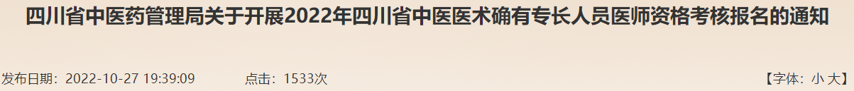 四川省中醫(yī)藥管理局關(guān)于開(kāi)展2022年四川省中醫(yī)醫(yī)術(shù)確有專長(zhǎng)人員醫(yī)師資格考核報(bào)名的通知,醫(yī)學(xué)教育網(wǎng)老師為大家整理總結(jié)如下,希望可以幫助到各位: