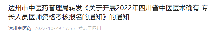 四川省中醫(yī)藥管理局關(guān)于開展2022年四川省中醫(yī)醫(yī)術(shù)確有專長人員醫(yī)師資格考核報名的通知