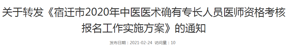 宿遷市2020年中醫(yī)醫(yī)術(shù)確有專長人員醫(yī)師資格考核報(bào)名工作實(shí)施方案