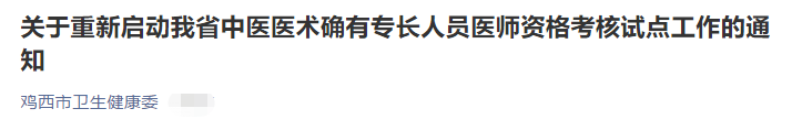 因我省疫情形勢已平穩(wěn),現(xiàn)重新啟動(dòng)中醫(yī)醫(yī)術(shù)確有專長人員醫(yī)師資格考核試點(diǎn)工作,有關(guān)事項(xiàng)通知如下: