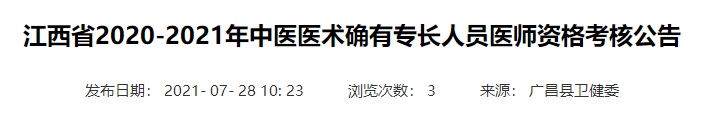 江西省2021年中醫(yī)醫(yī)術(shù)確有專長人員醫(yī)師資格考核報名通知匯總