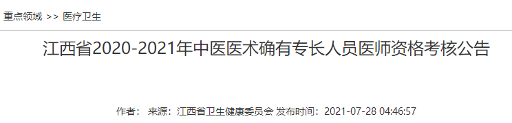 江西省2021年中醫(yī)醫(yī)術(shù)確有專長人員醫(yī)師資格考核報(bào)名通知匯總