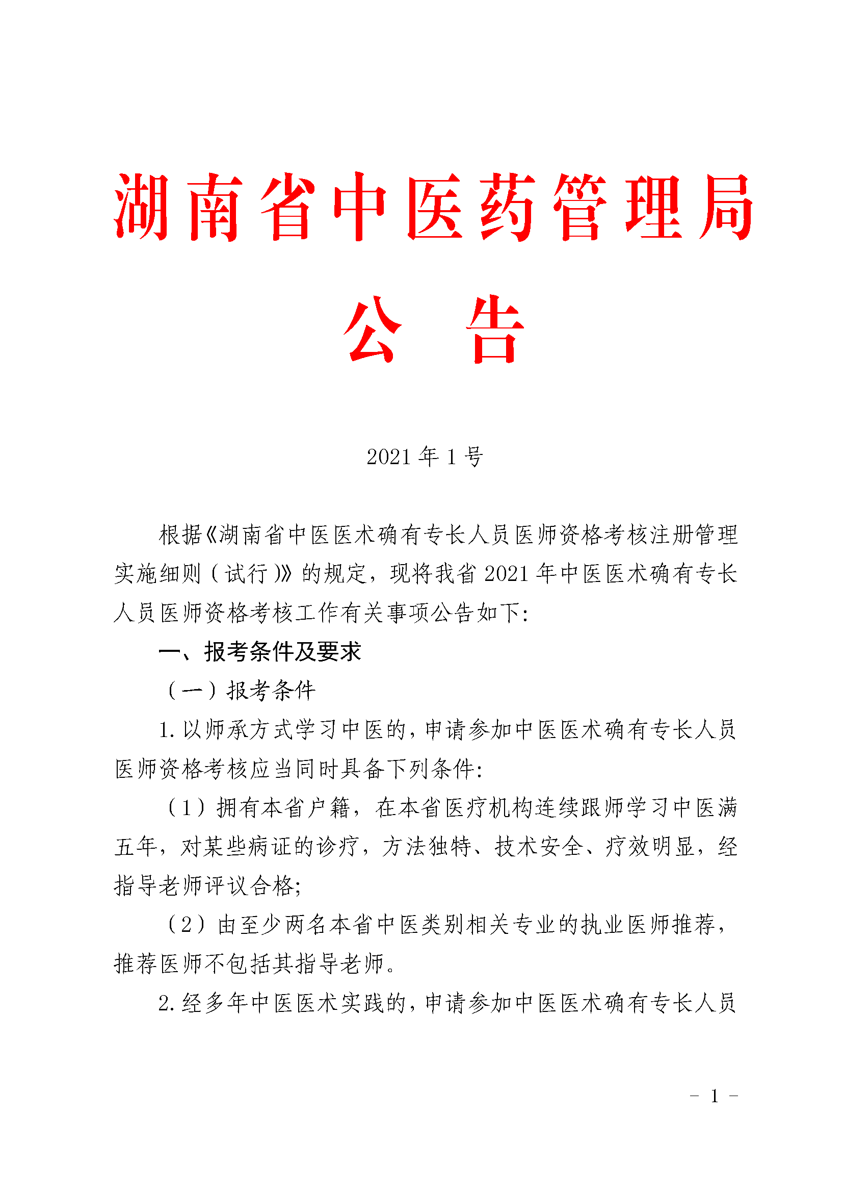 官方原文: 湖南省2021年中醫(yī)醫(yī)術確有專長人員醫(yī)師資格考核有關事項的公告