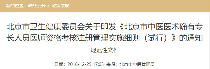 北京市衛(wèi)生健康委員會關于印發(fā)《北京市中醫(yī)醫(yī)術確有專長人員醫(yī)師資格考核注冊管理實施細則(試行)》的通知,醫(yī)學教育網(wǎng)老師為大家整理總結如下,希望可以幫助到各位: