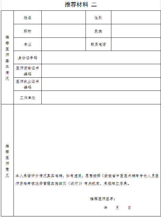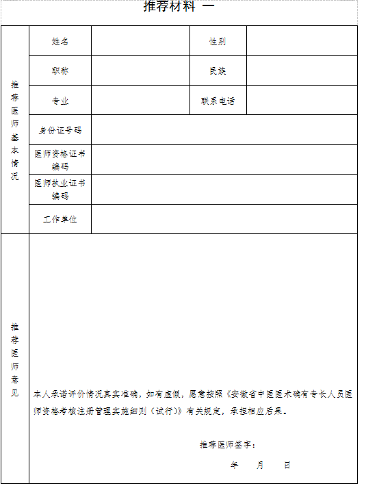 16.推薦醫(yī)師意見(jiàn):包括被推薦人姓名、醫(yī)術(shù)專長(zhǎng)和推薦理由等。