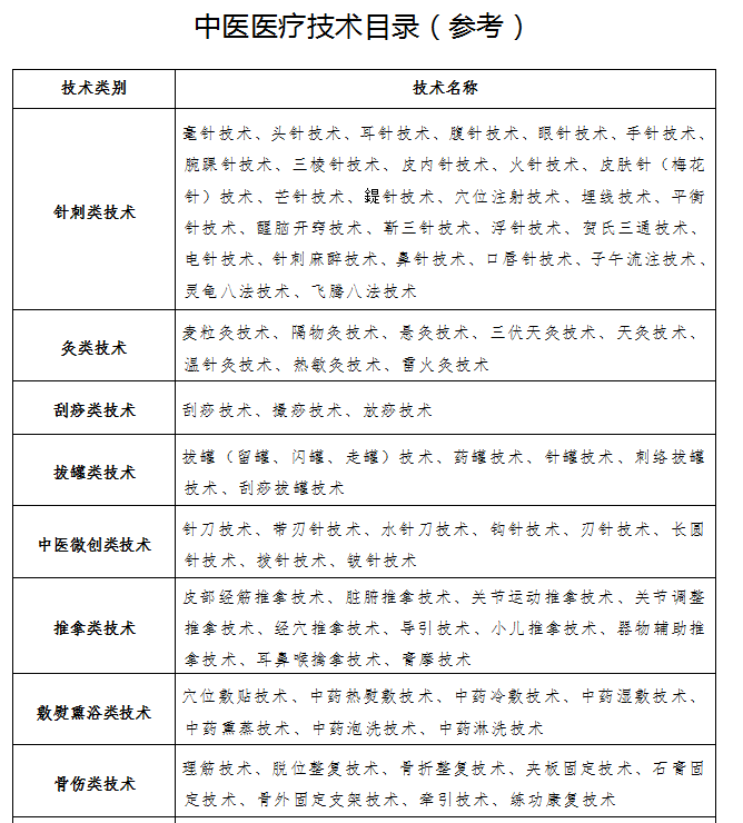 以下截圖為中醫(yī)醫(yī)療技術(shù)目錄部分內(nèi)容