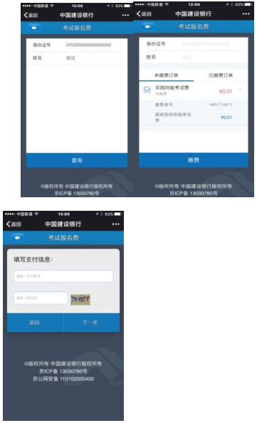 注意:因繳費是借用醫(yī)師資格考試繳費渠道,所有顯示“實踐技能考試費”的,正式繳費時均會改成“2019年中醫(yī)醫(yī)術確有專長考試費”。如有考生需要開具發(fā)票,請于2019年11月4日-11月8日(上午9:00-11:00,下午13:30-16:00)到青島市市南區(qū)龍山路1號甲,青島市衛(wèi)生健康科技教育中心三樓財務科辦理,過期不予辦理??忌绻诶U費操作中遇到問題,可撥打建行咨詢電話:0532-83876889。