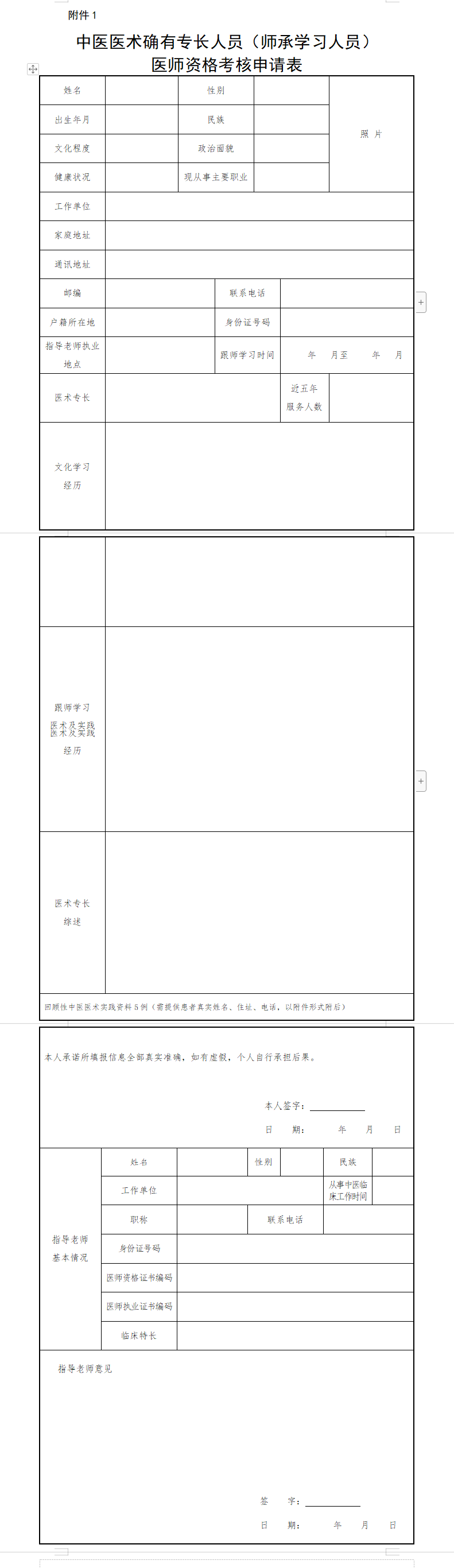 附件下載: 《中醫(yī)醫(yī)術(shù)確有專長(zhǎng)人員(師承學(xué)習(xí)人員)醫(yī)師資格考核申請(qǐng)表》