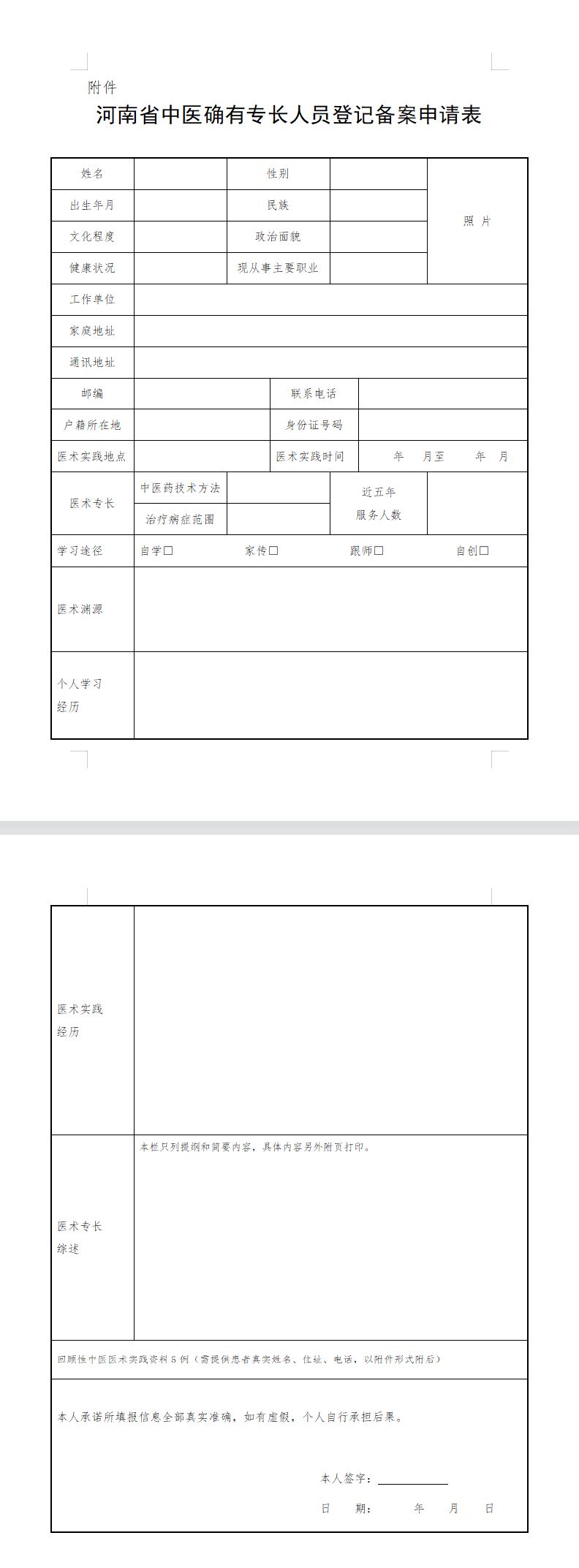1.本表供中醫(yī)醫(yī)術(shù)確有專長人員(多年實踐人員)申請參加醫(yī)師資格考核登記備案使用。