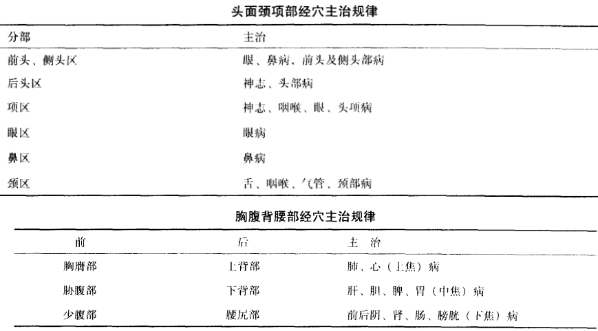 腧穴的主治規(guī)律,可以歸納為分經(jīng)主治規(guī)律和分部主治規(guī)律。