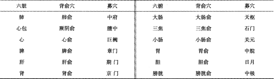 背俞穴是臟腑之氣輸注于背腰部的腧穴。募穴是臟腑之氣結(jié)聚于胸腹部的腧穴。