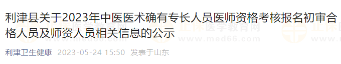山東省東營市利津縣2023年中醫(yī)醫(yī)術(shù)確有專長人員醫(yī)師資格考核審核最新動態(tài)已發(fā)布,剛剛結(jié)束考核報名縣級初審,請東營市利津縣報名中醫(yī)醫(yī)術(shù)確有專長的考生及時查看!